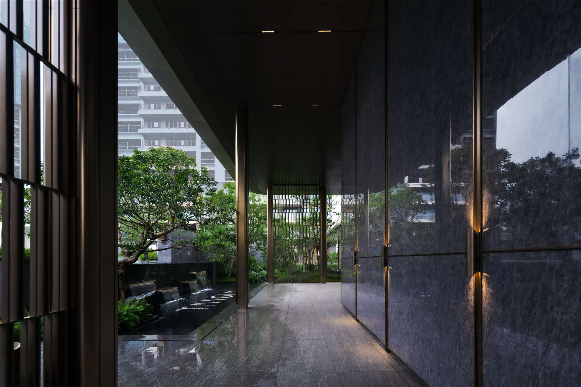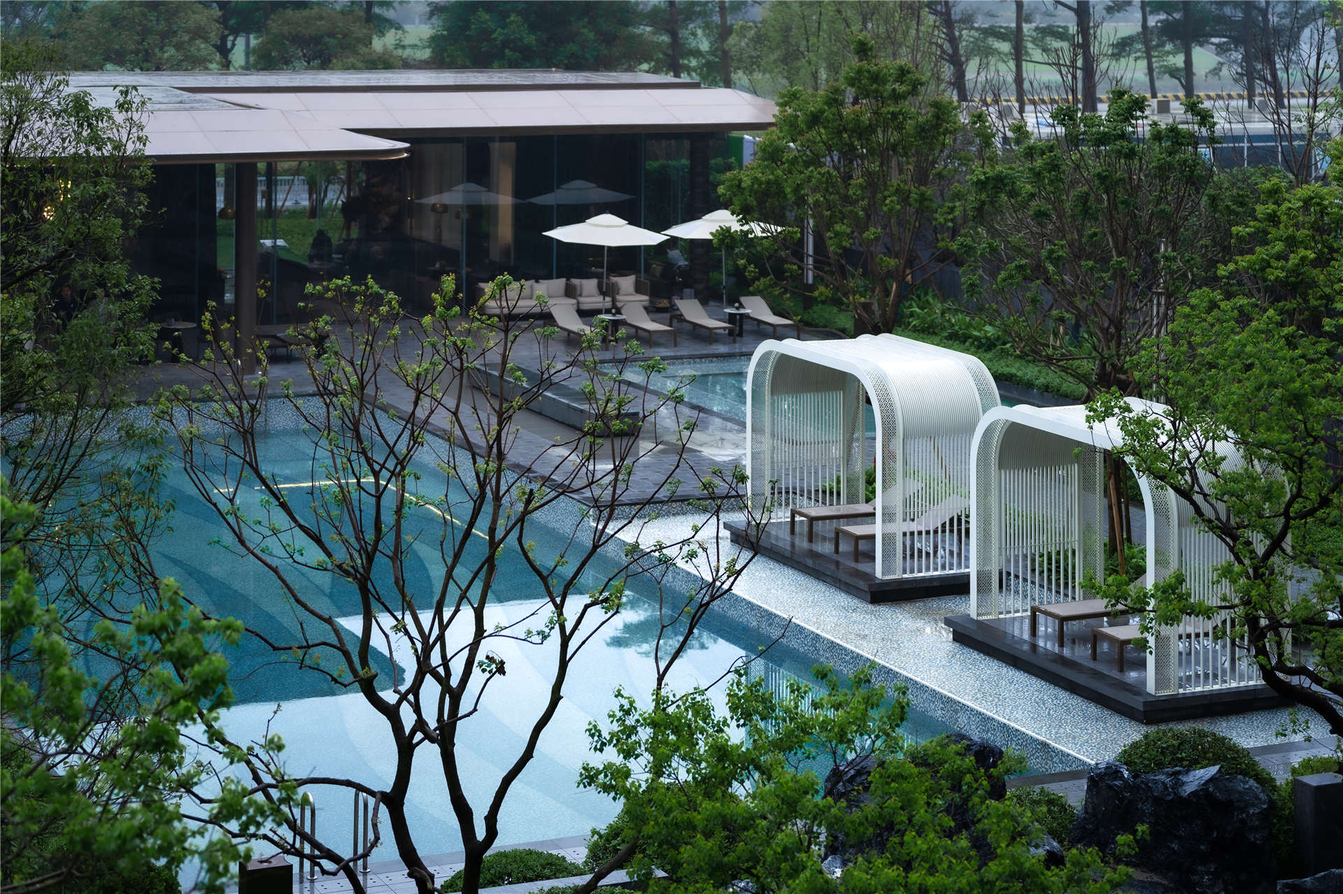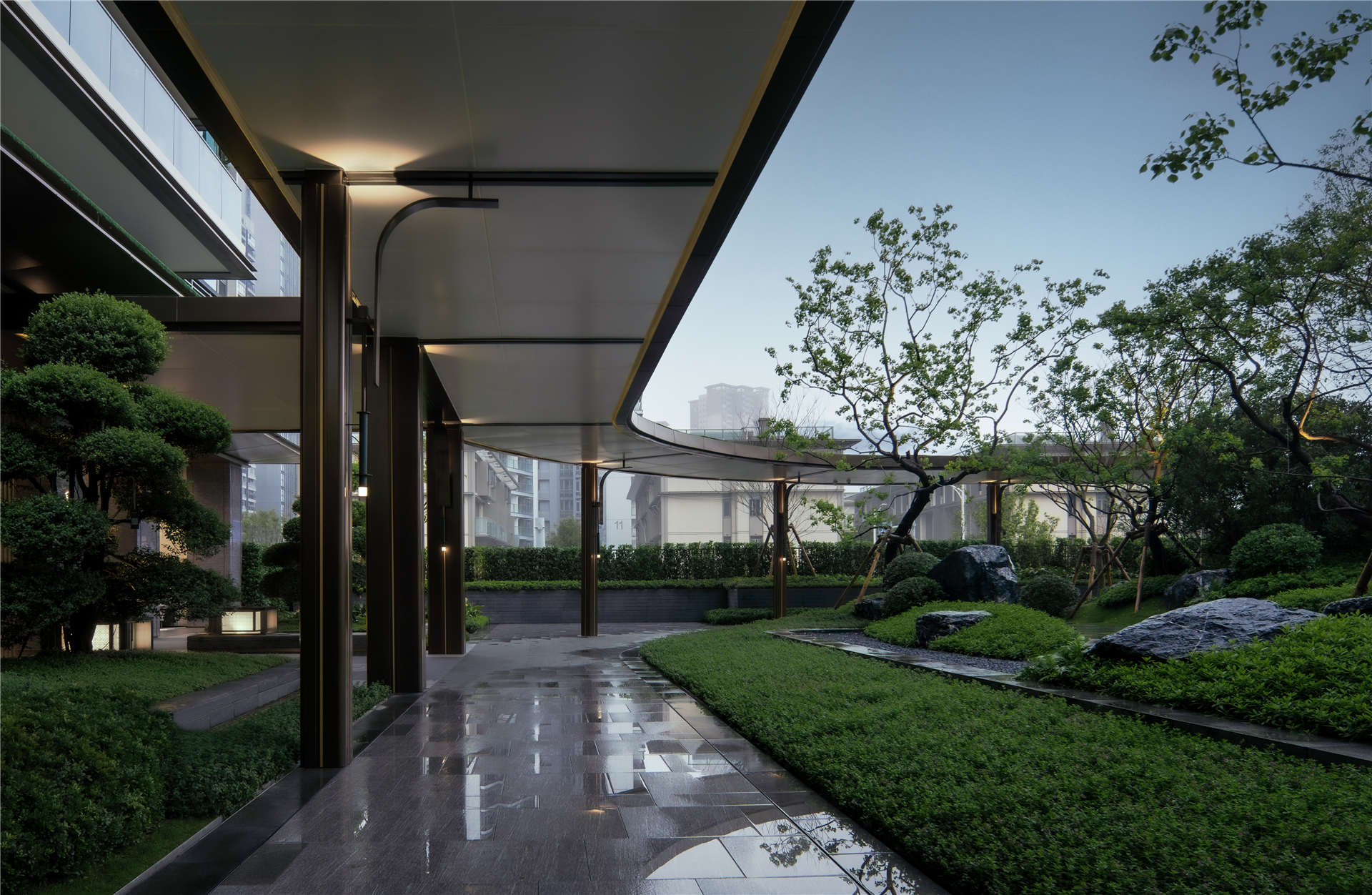 景觀借鑒傳統(tǒng)園林的布局和手法,仿古“獅子林”,以水池為中心,構(gòu)建 “南山—北苑—東堂—西園”的景觀格局,并通過“水—山—林—廊”把各個主題空間串聯(lián)起來,咫尺之間營造多維林庭,把自然美和藝術(shù)美融為一體。