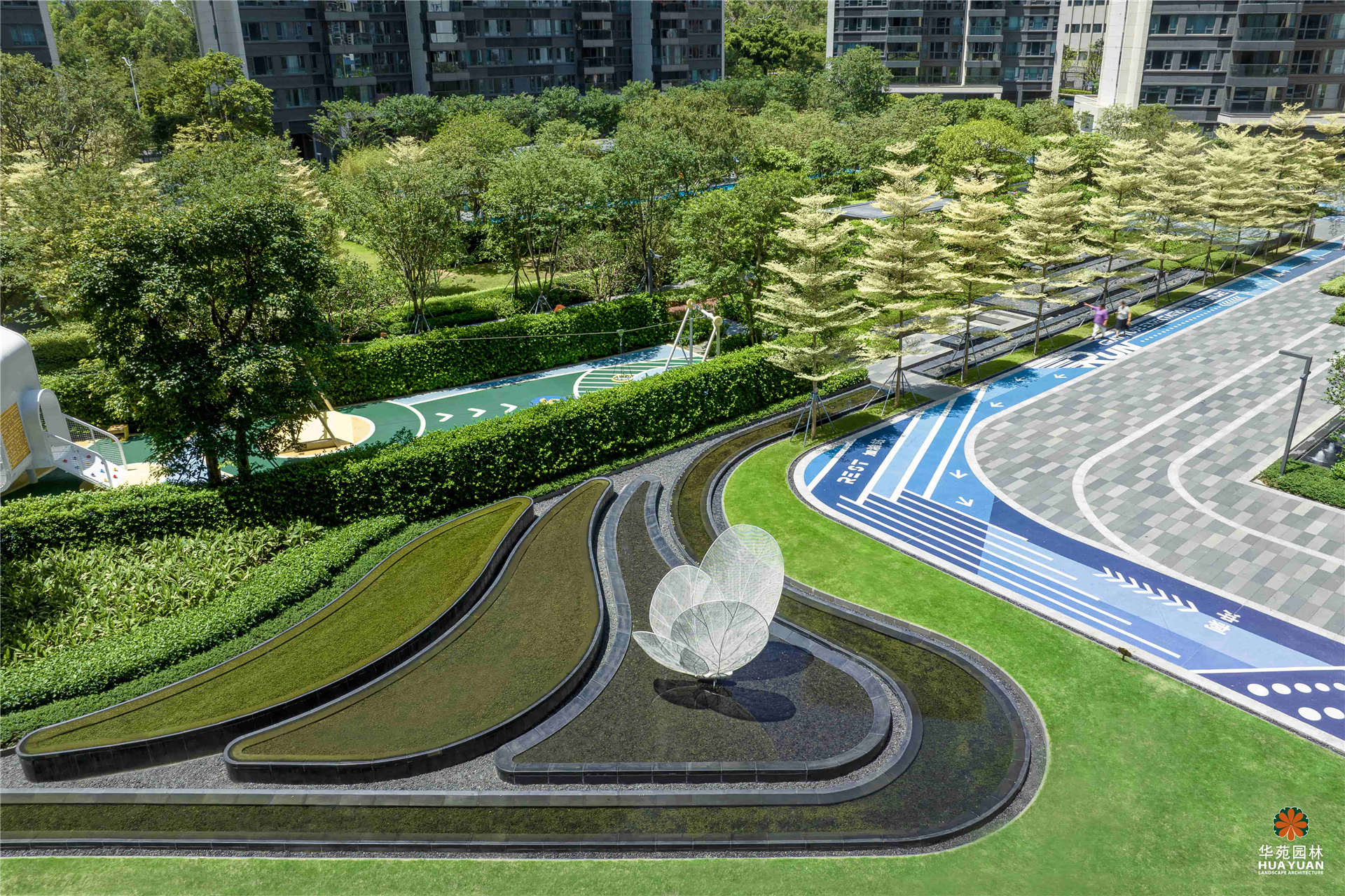 在大區(qū)景觀的營(yíng)造中,以圍合式的景觀布局,形成開(kāi)闊舒展的中央公園,使景觀視野最大化。萬(wàn)余平的中央園林中,綠林碧野,流水潺潺,創(chuàng)造了一個(gè)自然、健康、活力、歡樂(lè)、共享的住區(qū),以自然之景寫一首浪漫的生活之詩(shī)。