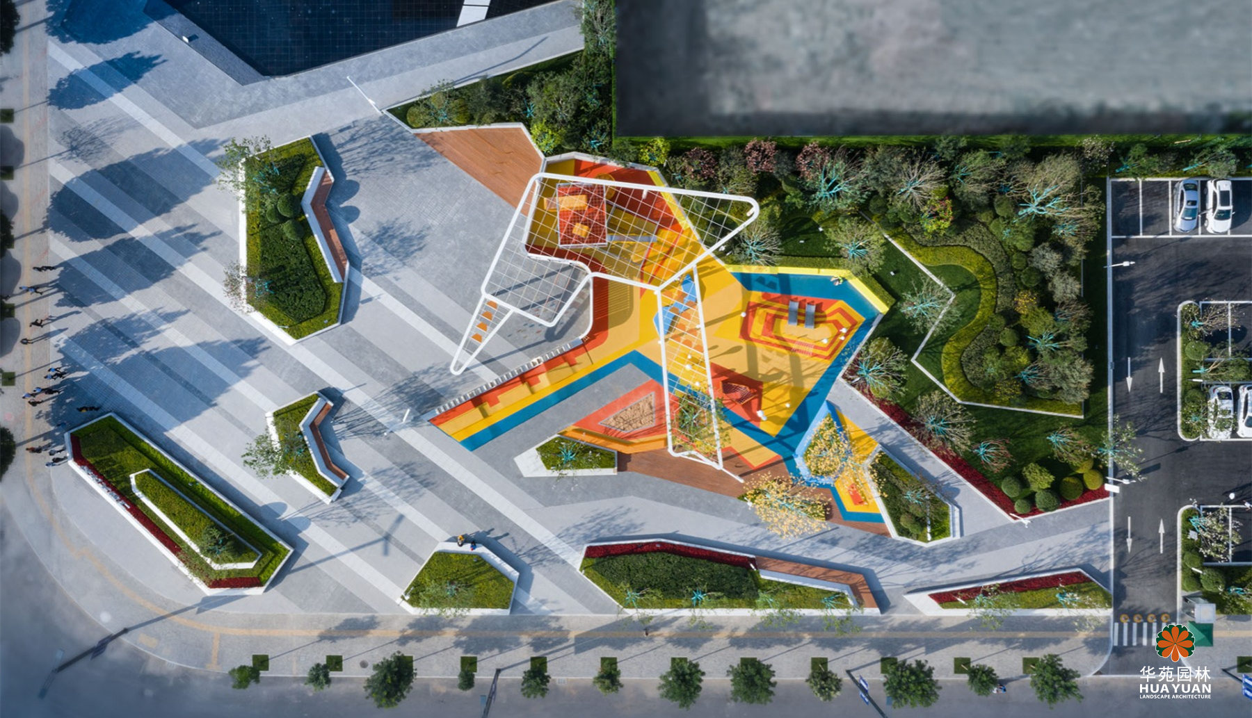 項(xiàng)目采用現(xiàn)代的景觀營(yíng)造理念,運(yùn)用形態(tài)多變的折線條塑造全齡參與的多功能場(chǎng)地,色彩豐富的軟景與線條多變的硬景,融合成簡(jiǎn)約大氣、充滿活力的景觀空間。