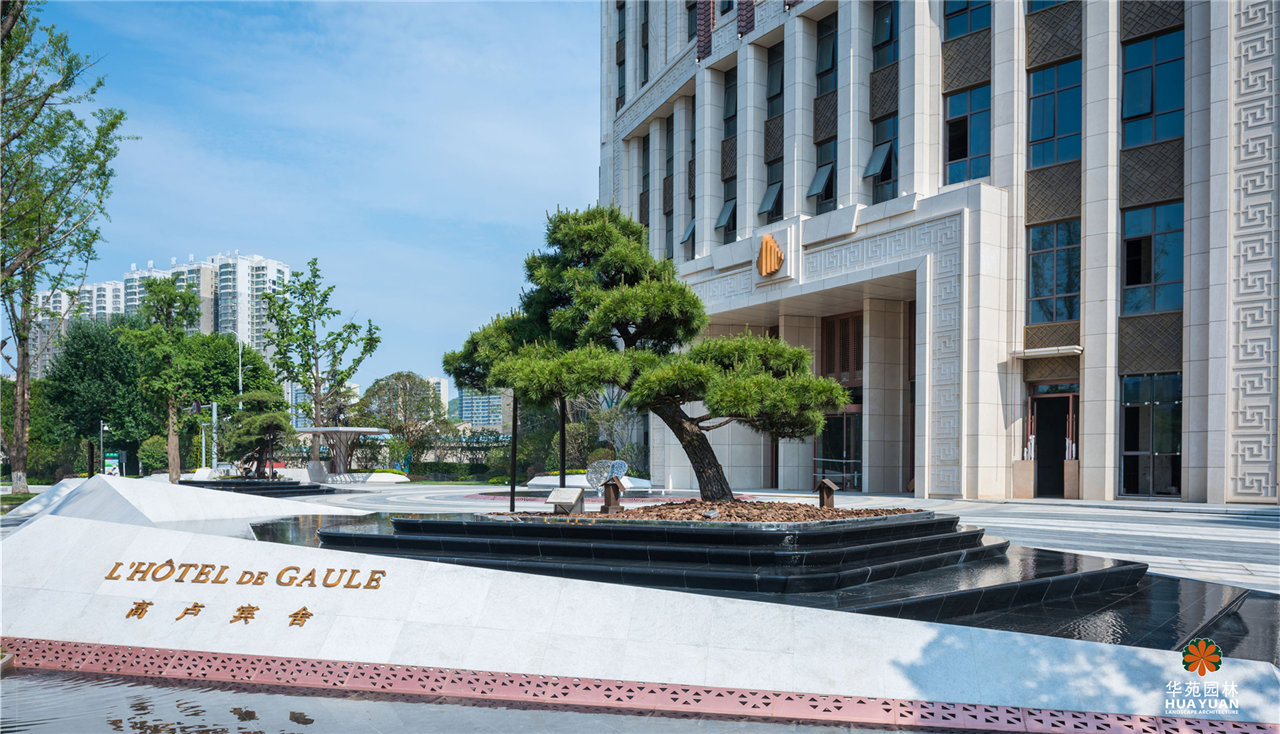 高端商業(yè)綜合體中的五星級(jí)酒店,是華苑園林的設(shè)計(jì)、施工一體化項(xiàng)目。從法國(guó)盧浮宮的金字塔形玻璃入口--與鉆石的切割面汲取靈感,打造簡(jiǎn)約、優(yōu)雅的景觀格調(diào),并融入本土文化,引入山形、水韻、古松等東方元素,創(chuàng)造出帶有文化記憶的現(xiàn)代景觀效果。