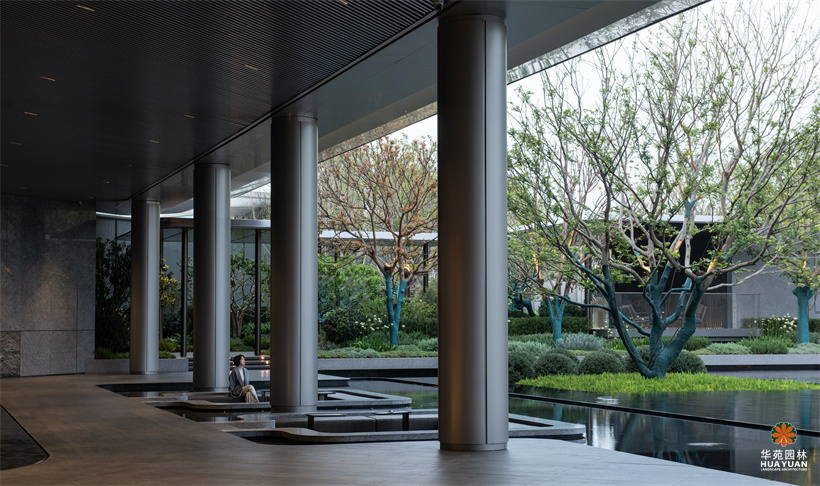 項目位于廣州天河智谷,以現(xiàn)代主義設(shè)計語言刻畫出場地的靈動與松弛感,華苑園林匠造大規(guī)模架空層,精工細(xì)作多處藝術(shù)鏡面水景、弧形景墻,以自然手法堆坡造林,刻畫森系場景,營造具有藝術(shù)和精致煙火氣的品質(zhì)住宅。