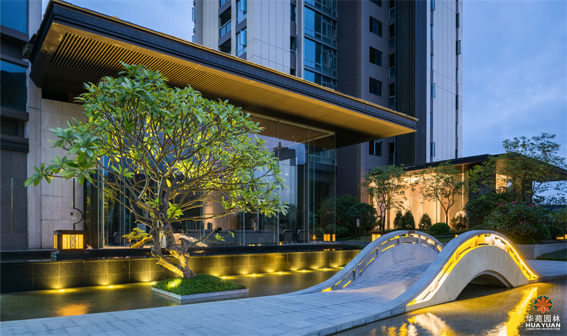 保利地產(chǎn)在清遠(yuǎn)打造的首個(gè)“天”字系濱江豪宅項(xiàng)目。寬窄不一、弧度各異的十九層跌級(jí)水景,與橫斜逸出的羅漢松,展現(xiàn)優(yōu)雅的迎客之態(tài);造型黑松孤植于黑色礫石中,展現(xiàn)東方意趣;設(shè)置四層弧線(xiàn)各異的疊級(jí)湖底的人工湖、雅致婉約的拱橋、頗具氣勢(shì)的假山水幕,共同打造出大氣典雅的府邸宅院景觀(guān)。
