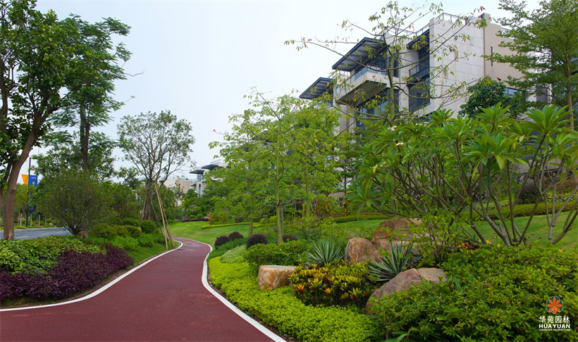 結(jié)合項目建筑群的旗艦形態(tài),融合當(dāng)?shù)鬲氂械淖匀?、人文元素,以黑、白、灰為硬景主調(diào),使用不同的主題水景、景觀小品等處理景觀節(jié)點,搭配多元化的綠植配置,呈現(xiàn)出簡約、現(xiàn)代的景觀格調(diào)。
