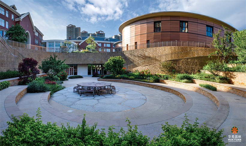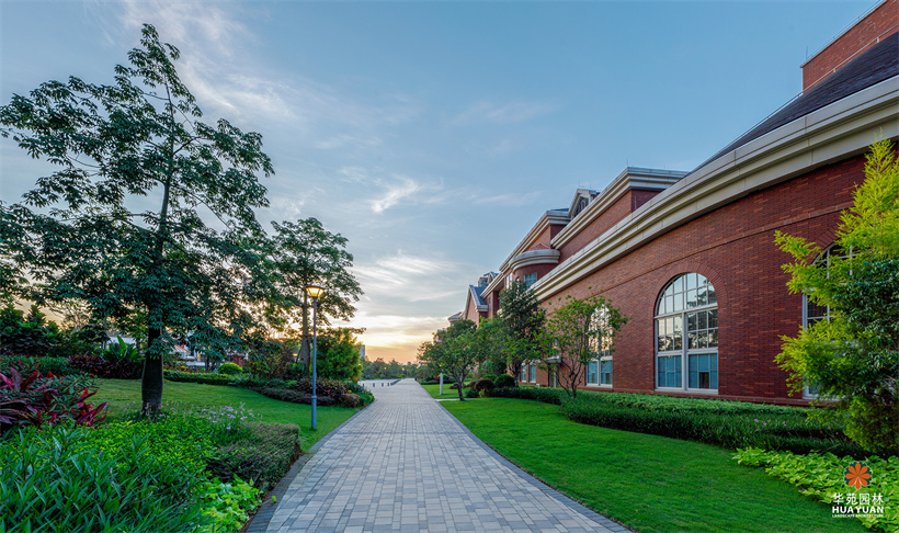 項目以自然式景觀風格,搭配歐式建筑及灰、白主調(diào)的地鋪,采用豐富多樣的綠植團組特別是花境,營造安靜、自然、舒適的校園環(huán)境。