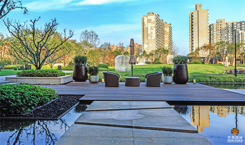 豫發(fā)集團(tuán)大成之作,鄭州北區(qū)高端住宅項(xiàng)目。厚重的臺(tái)階與對(duì)稱式綠植組合,營(yíng)造出富有儀式感的入口空間;靜水、汀步契合自然,刻畫現(xiàn)代風(fēng)骨;景墻糅合山水元素,書寫東方神韻;起伏有致的大草坪活動(dòng)空間,讓生活更愜意、自然。