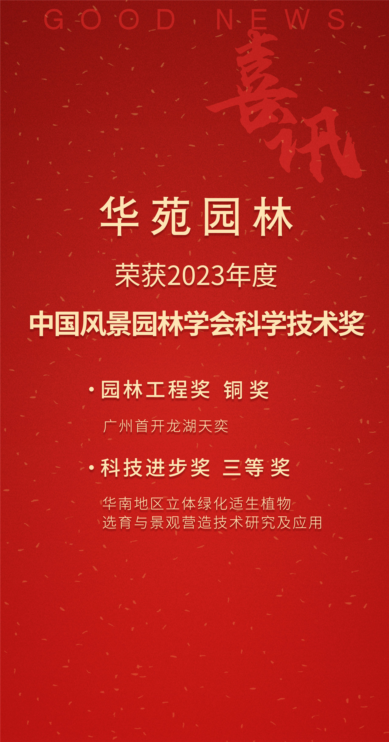 近日,第十四屆中國風(fēng)景園林學(xué)會年會在深圳開幕,會上頒發(fā)了2023年中國風(fēng)景園林學(xué)會科學(xué)技術(shù)獎,華苑園林成功將兩類子獎項收入囊中。其中,廣州首開龍湖天奕項目榮獲園林工程獎銅獎;華南地區(qū)立體綠化適生植物選育與景觀營造技術(shù)研究及應(yīng)用項目榮獲科技進(jìn)步獎三等獎。